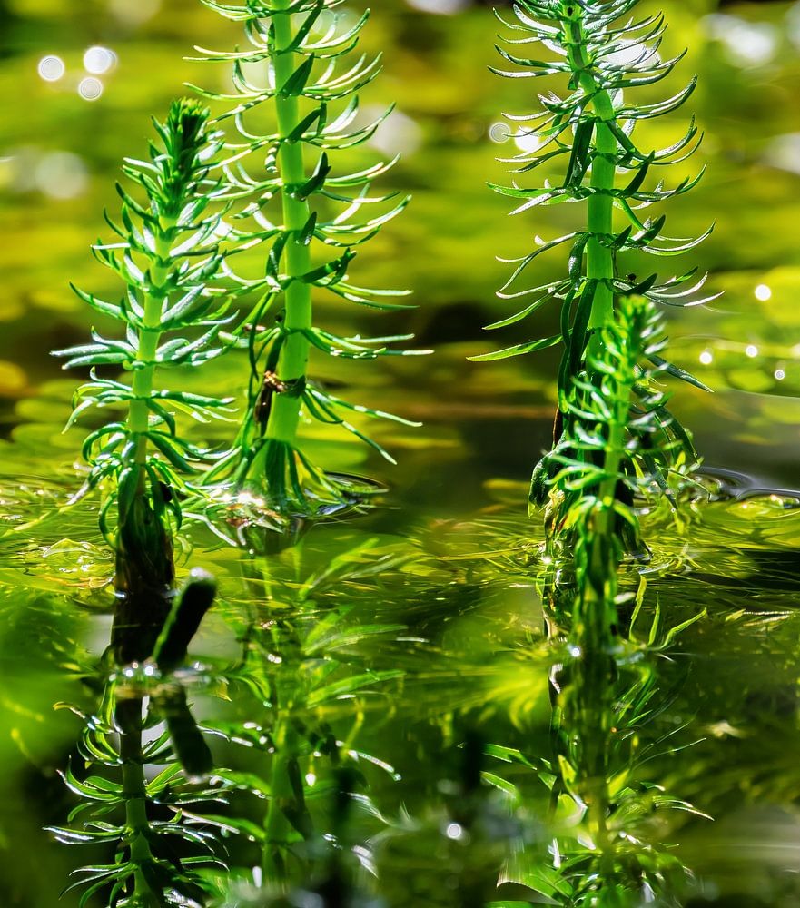 Tannenwedel welche sich im Wasser spiegeln im Gartenteich