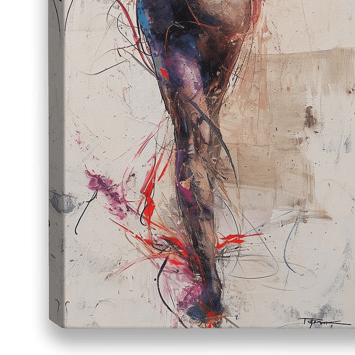 Dance of Colour Lines - Dieses Werk balanciert elegant zwischen abstraktem Ausdruck und figurativer Vorstellungskraft; ein Gemälde, das die menschliche Silhouette durch ein Wirrwarr von Farben und Formen feiert. Der Hintergrund bleibt ruhig in neutralen Tönen, während sich die Energie unverkennbar auf die figurativen Elemente…