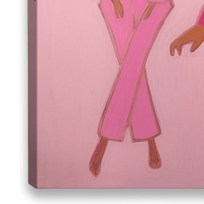 Dance with me ist eine Ode an das mediterrane Leben. Es ist ein Kunstwerk, das Spaß ausstrahlt und mit seinen hellen rosa Farben zum Tanzen und Feiern des Lebens einlädt.