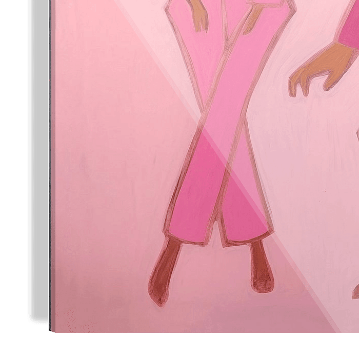 Dance with me ist eine Ode an das mediterrane Leben. Es ist ein Kunstwerk, das Spaß ausstrahlt und mit seinen hellen rosa Farben zum Tanzen und Feiern des Lebens einlädt.
