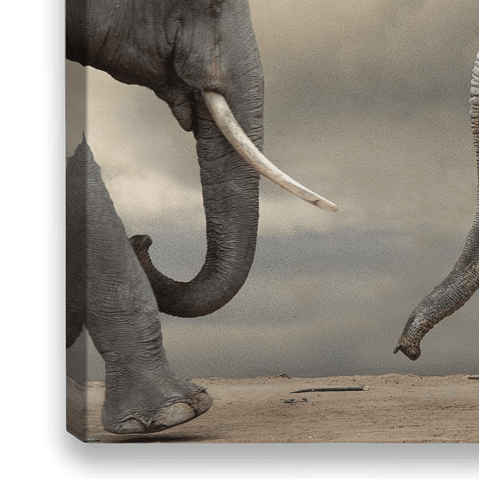 Bestelle dieses Landschafts-Wandbild Tanzende Elefanten von Marcel van Balken als Reproduktion auf Leinwand, Alu-Dibond, als Poster, Fototapete oder Acrylglasbild.