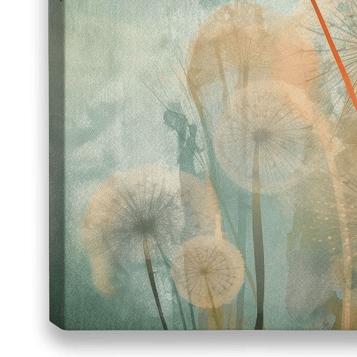 Bestelle dieses Blumen-Wandbild Tanzender Löwenzahn: Ein Ausbruch der Eleganz der Natur von Floral Abstractions als Reproduktion auf Leinwand, Alu-Dibond, als Poster, Fototapete oder Acrylglasbild.