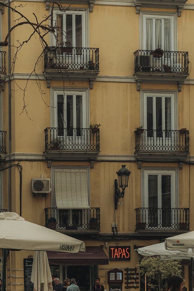Das Bild fängt die gesellige Stimmung auf einer typisch spanischen Caféterrasse ein, eingebettet zwischen historischen Wohnhäusern mit prachtvollen Balkonen. Unter großen Sonnenschirmen genießen Menschen Tapas, Getränke und entspannte Gespräche. Die lebendige Atmosphäre des Platzes spiegelt die spanische Kultur wider, die sich durch Gastfreundschaft, kulinarische Vielfalt und lebensfrohe Gemeinschaft definiert. Die architektonischen Details der Fassaden geben dem Motiv eine nostalgische Note und unterstreichen die urbane Eleganz. Das Bild spricht Liebhaber von Gastronomie, Südeuropa und städtischer Lebensfreude an und eignet sich ideal als dekorativer Blickfang für Küchen, Essbereiche oder Cafés. Es verbindet Tradition mit Moderne, inspiriert zu geselligen Stunden und verleiht jedem Raum einen Hauch mediterranen Stil und Freude am gemeinsamen Erlebnis.