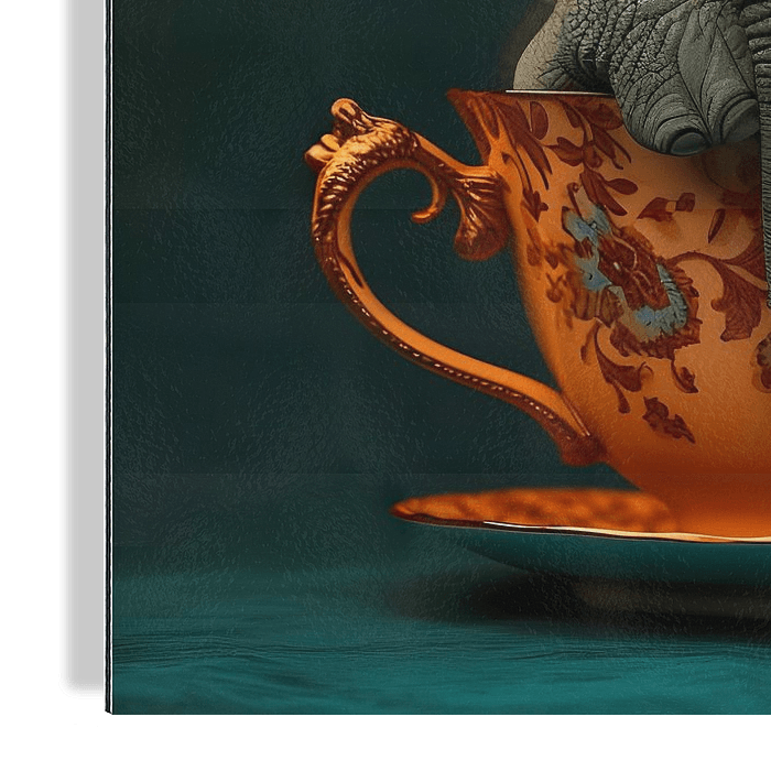 Bestelle diese Malerei Tasse Elefant von But First Framing als Reproduktion auf Leinwand, Alu-Dibond, als Poster, Fototapete oder Acrylglasbild.