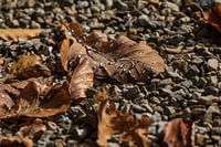 rain or dew drops on a couple of fallen autumm leafs