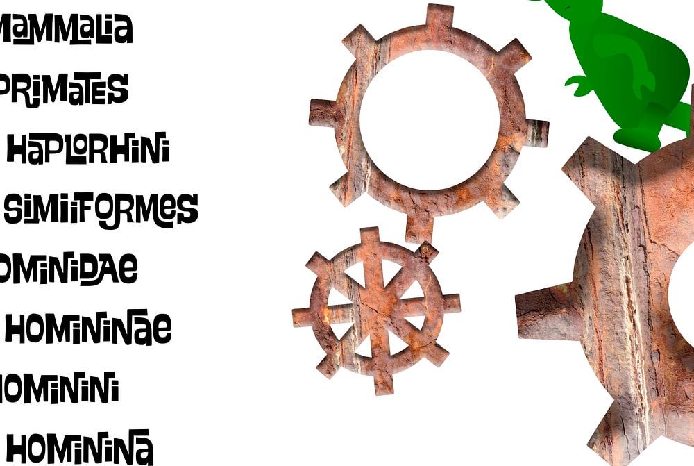 Biologische Klassifizierung für einen Ingenieur mit einem Grüntyer, der auf Zahnrädern läuft.