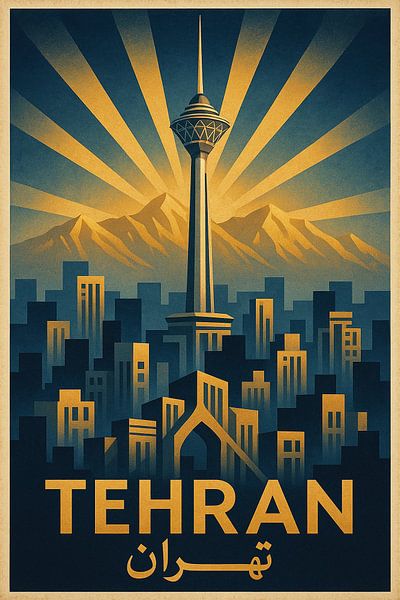 Über „Teheran Skyline Vintage Poster - Milad Turm & Alborz Berge Kunst“ von Travel Shop