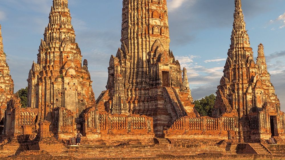 Der Wat Chai Watthanaram-Tempel in Ayutthaya liegt etwas oberhalb von Bangkok und war früher die Hauptstadt von Bangkok. In der Stadt befinden sich mehrere antike Tempel.