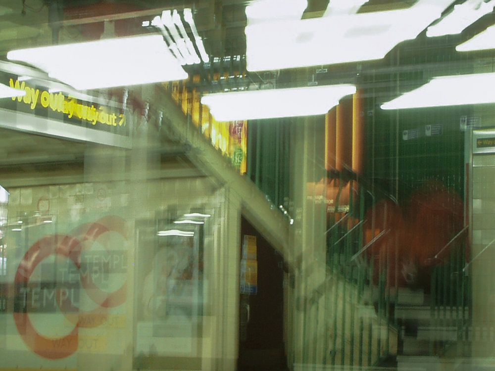 8. Station ist Temple. Der Weg nach draußen führt über die Treppe.