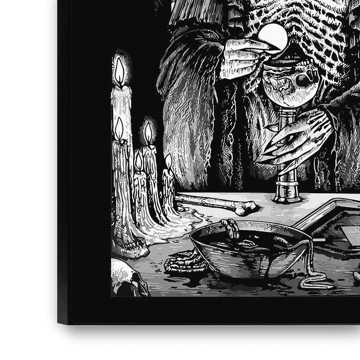 Hochwertige Teufelsanbetung im Schwarz-Weiß-Stil,