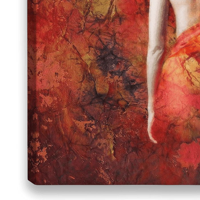 Buntes abstraktes Gemälde in Rot- und Goldtönen mit grober Textur und Pinselstrichen auf Leinwand, mit dem Konzept von Gefühl und Leidenschaft