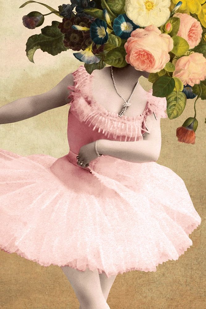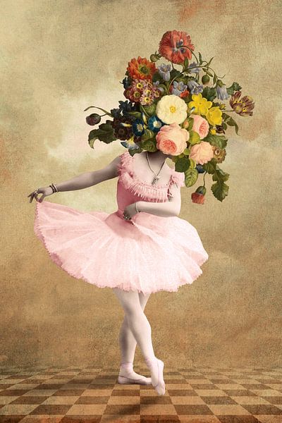 Es kombiniert die Eleganz einer Balletttänzerin mit der natürlichen Schönheit eines leuchtenden Blumenstraußes als Kopf.