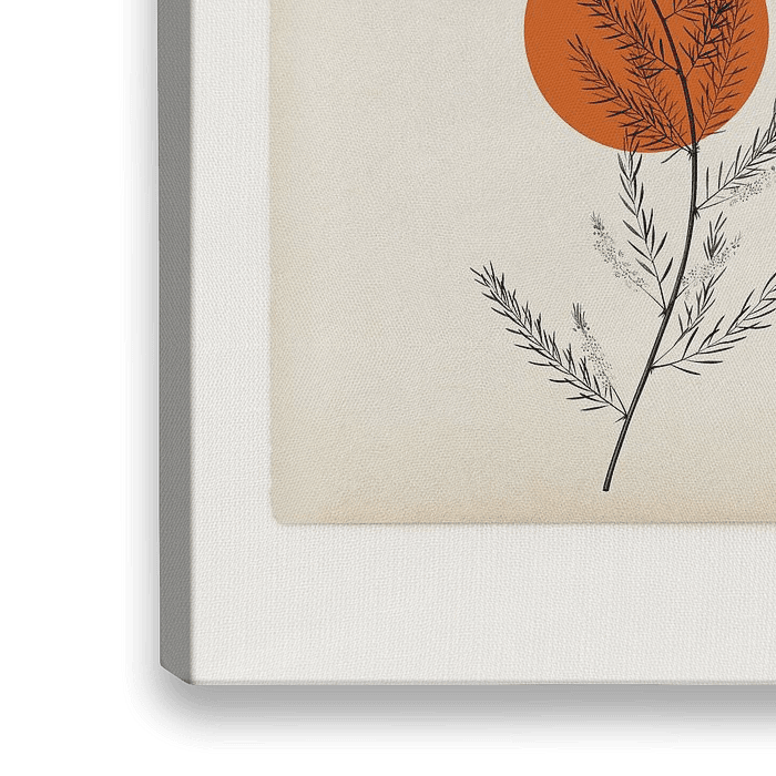 Zweig mit Blättern auf einem orangefarbenen Kreis.