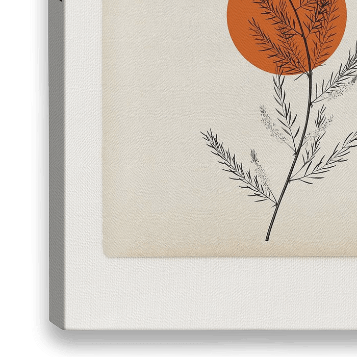 Zweig mit Blättern auf einem orangefarbenen Kreis.