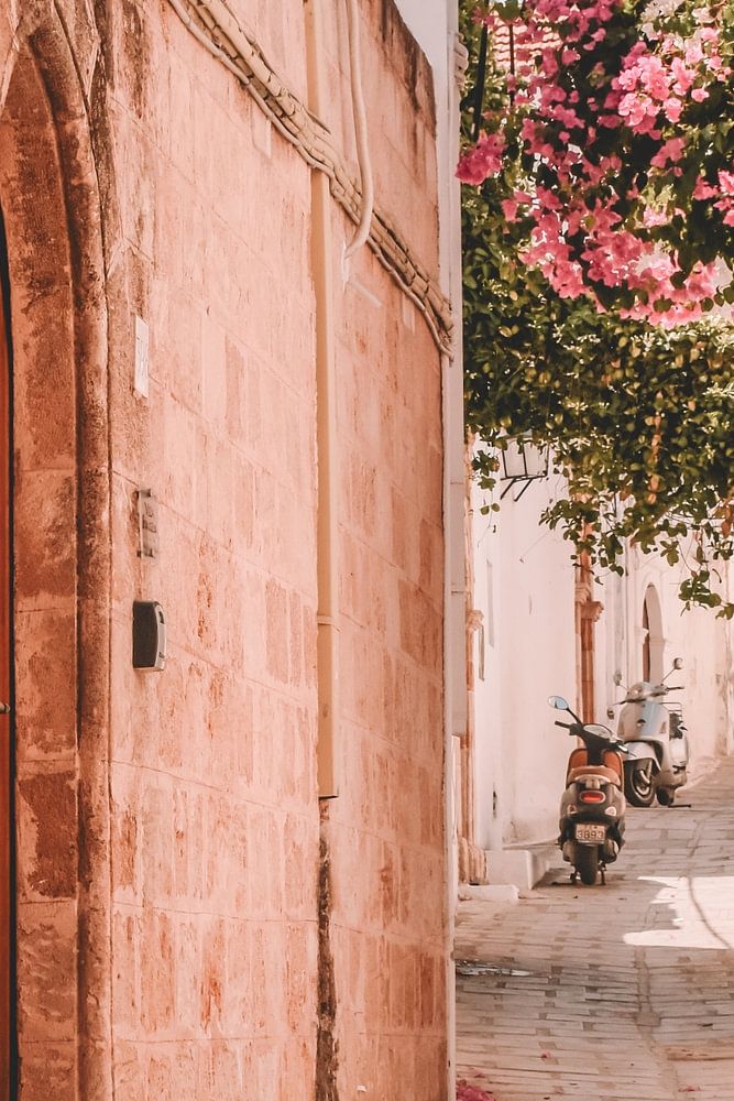 Als ich Rhodos besuchte, stieß ich fast zufällig auf diese Gasse im Zentrum des Dorfes Lindos. Ich habe mehrere Fotos von diesem Ort gemacht, und dieses fand ich persönlich am schönsten. Das Sonnenlicht spiegelte sich in den rosafarbenen Blumen, und die Motorroller im Hintergrund sorgten für einen netten, menschlichen Touch. Als ob die Bewohner jeden Moment aus der Tür treten könnten.