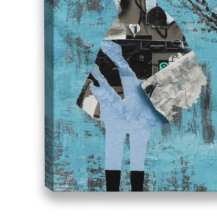 Eine moderne digitale Collage kombiniert mit abstrakte Acrylmalerei. Kein KI-Kunstwerk.