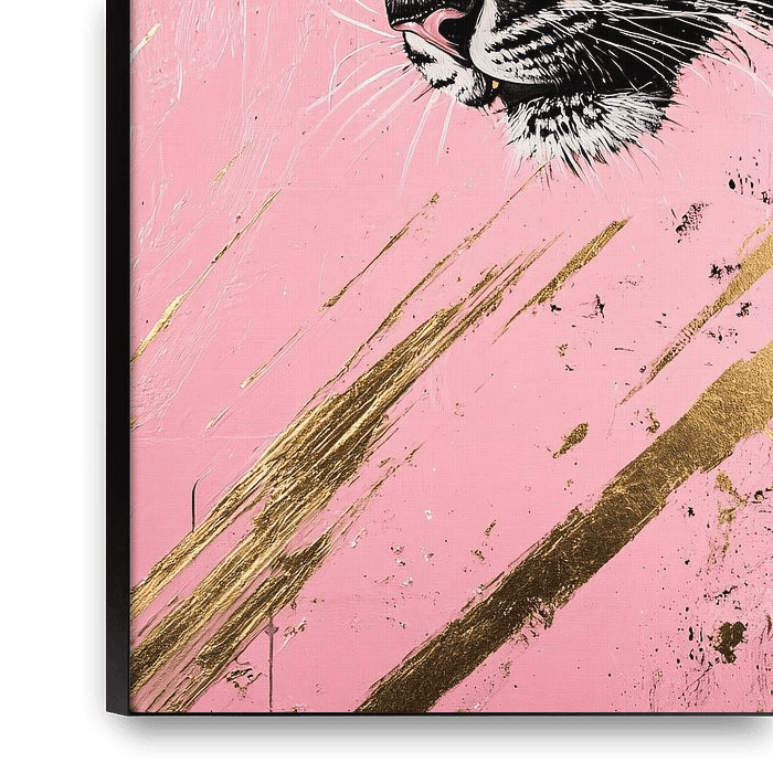 Bestelle dieses abstrakte Wandbild Tiger mit Rosa und Gold von Imperial Art House als Reproduktion auf Leinwand, Alu-Dibond, als Poster, Fototapete oder Acrylglasbild.