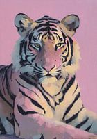 Bestelle diese Malerei Tigerporträt vor pinkem Hintergrund von Niklas Maximilian als Reproduktion auf Leinwand, Alu-Dibond, als Poster, Fototapete oder Acrylglasbild.