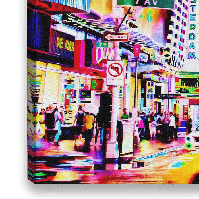 Der Times Square in New York ist die Kreuzung der Welt! Bunter Eindruck der Werbetafeln, der Menschen und des dichten Verkehrs. Ein fantastischer Blickfang an der Wand, wenn du Farbe magst!