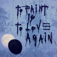 Graffiti an einer Wand in Wien. Es zeigt den Satz "To paint is to love again". Der Hintergrund ist Blau und besteht aus einer Betonfläche. Die Schrift ist schwarz und löst sich, wie kurz nach dem Aufsprayen, in Streifen nach unten aus.