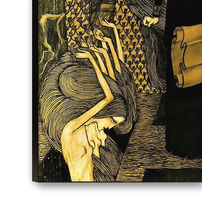 Die zentrale Figur des Gemäldes strahlt ein Gefühl der Introspektion und Kontemplation aus. Der düstere Ausdruck und der eindringliche Blick vermitteln eine große emotionale Tiefe und laden den Betrachter dazu ein, über die Zerbrechlichkeit und Vergänglichkeit des Lebens nachzudenken.