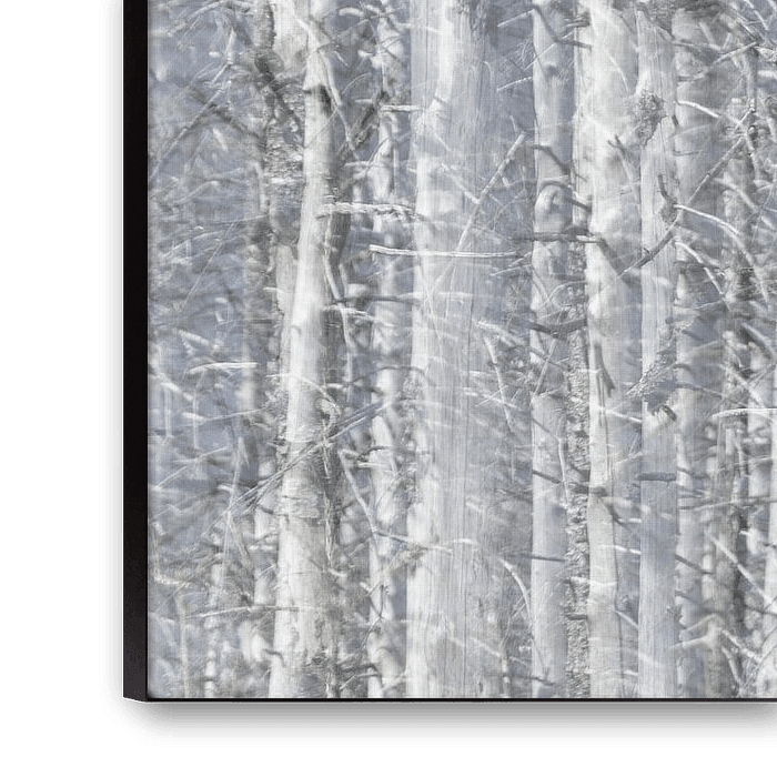 Foto mit Doppelbelichtung einer großen Gruppe toter Bäume im Harz.