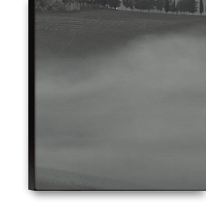 Bestelle dieses Landschafts-Wandbild Toskana Landschaft im dichten Morgennebel von Besa Art als Reproduktion auf Leinwand, Alu-Dibond, als Poster, Fototapete oder Acrylglasbild.