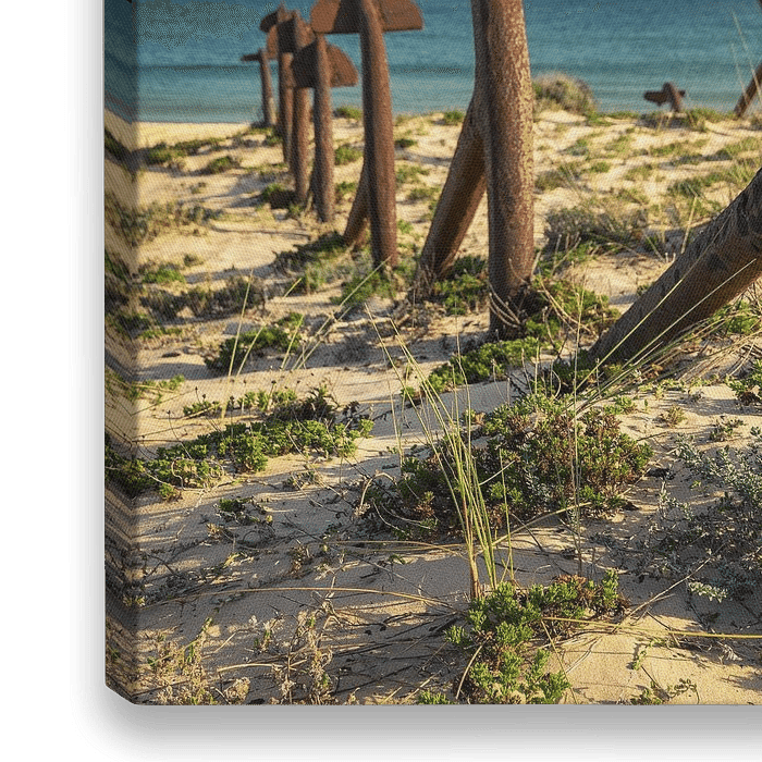 Dieses Bild zeigt ein Feld mit rostigen Anker am Strand im Portugal.