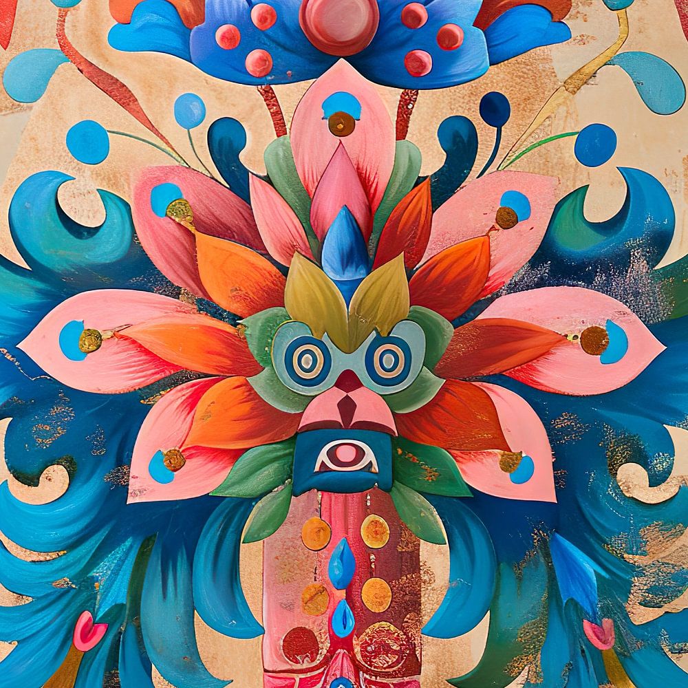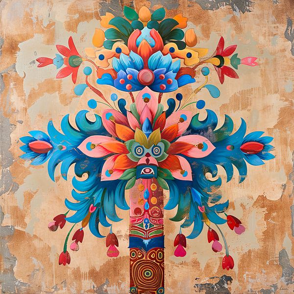 Eine Explosion der Farben! Stilvolle, abstrakte Wanddekoration mit einem Blumenmotiv in einer ausdrucksstarken Farbkombination.