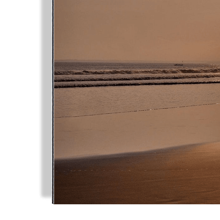 Dieses Foto fängt die Essenz der Ruhe am Meer ein, am Strand von Pangandaran in Indonesien. Die Sonne, die noch hoch steht, aber bereits von den warmen Tönen der Abenddämmerung gemildert wird, beleuchtet sanft den Indischen Ozean und wirft goldene Reflexe auf den feuchten Sand. Im Vordergrund liegt ein traditionelles indonesisches Boot still da, dessen dunkle Linien sich harmonisch im Licht abheben. Die Flagge, die über dem Boot weht, fügt einen Hauch von lokaler Identität hinzu und erinnert an die Bedeutung des Meeres im Leben der Einwohner. Am Horizont verschmilzt das Meer mit dem Himmel, der im schwindenden Licht glüht, während kleine Silhouetten von Spaziergängern den Strand unauffällig übersäen. Die einfache und poetische Komposition erinnert an Ruhe, Erwartung und die zerbrechliche Schönheit von Augenblicken, die in der Schwebe bleiben. Es ist eine Einladung, die Zeit stillstehen zu lassen, Gelassenheit zu spüren und in die einzigartige Sanftheit der indonesischen Küstenlandschaft einzutauchen.