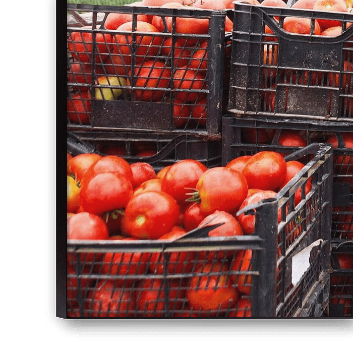 Traktor mit Ladefläche vollbepackt mit Tomaten