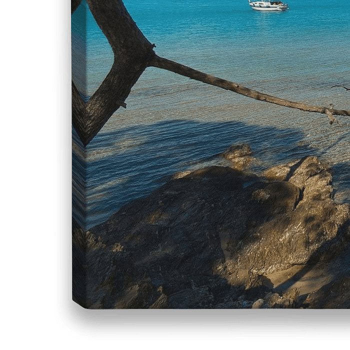 Bestelle dieses Landschafts-Wandbild Traumstrand auf der Ile de Porquerolles in Südfrankreich von Tanja Voigt als Reproduktion auf Leinwand, Alu-Dibond, als Poster, Fototapete oder Acrylglasbild.