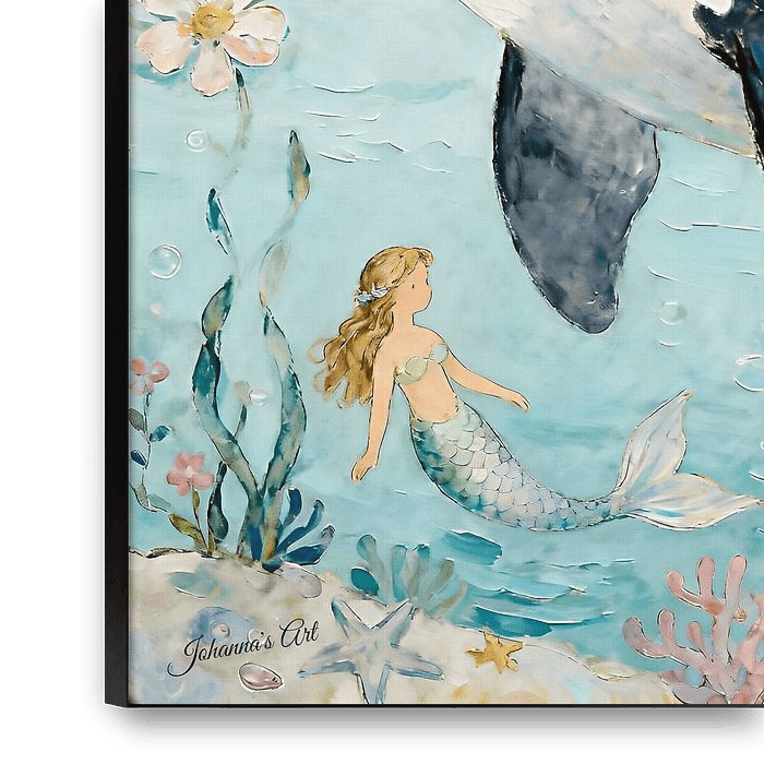 Bringen Sie die ruhige Schönheit des Ozeans in das Zimmer Ihres Kindes mit „The Dreamling Meadow – Kids Collection“, einem luxuriösen Kunstdesign in Museumsqualität, das Fantasie, Eleganz und Ruhe vereint. Dieses faszinierende, von Aquarellen inspirierte Gemälde zeigt einen majestätischen Orca mit auffälligen blauen Augen, der anmutig…