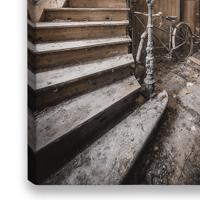 Bestelle das Foto Treppenhaus mit Fahrrad in der Halle von Inge van den Brande als Reproduktion auf Leinwand, Alu-Dibond, als Poster, Fototapete oder Acrylglasbild.