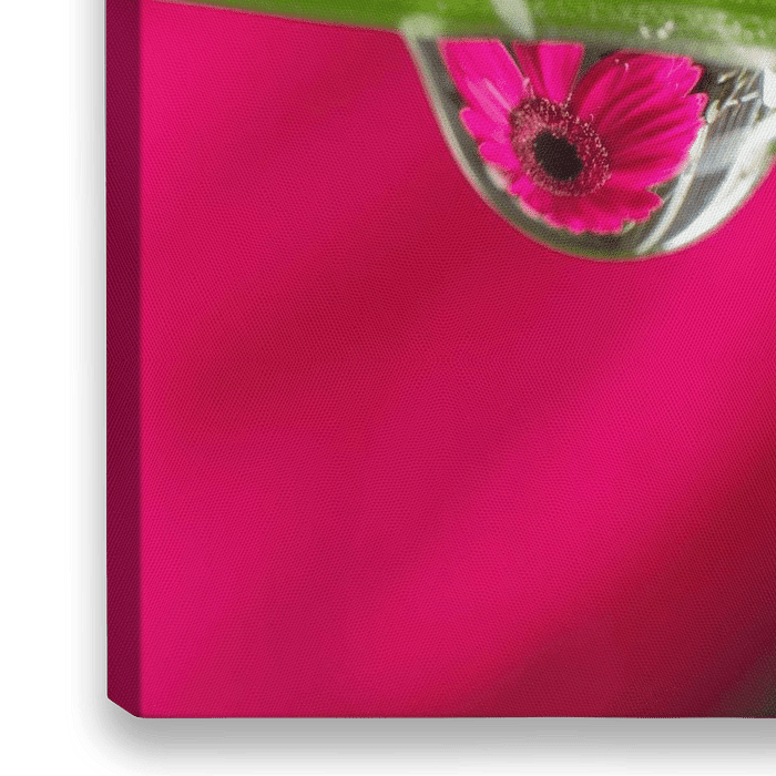 Das 3 in 1-Spiegelung eines Gerbera; 1 Blume spiegelt sich in 3 Tropfen Wasser.