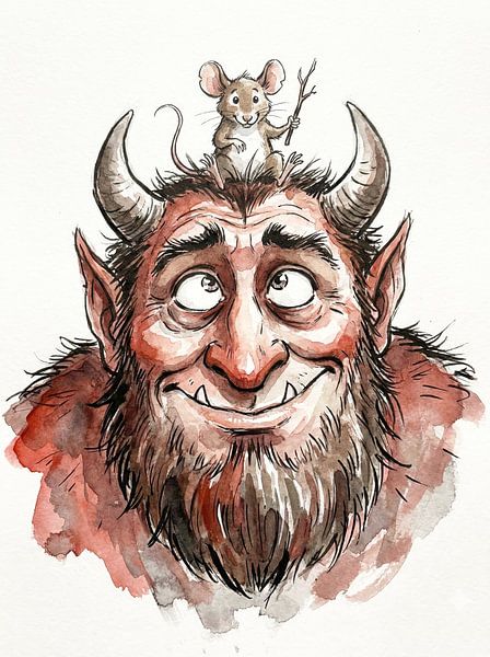 Eine skurrile Illustration zeigt einen Troll mit einer winzigen Maus als Begleiter.