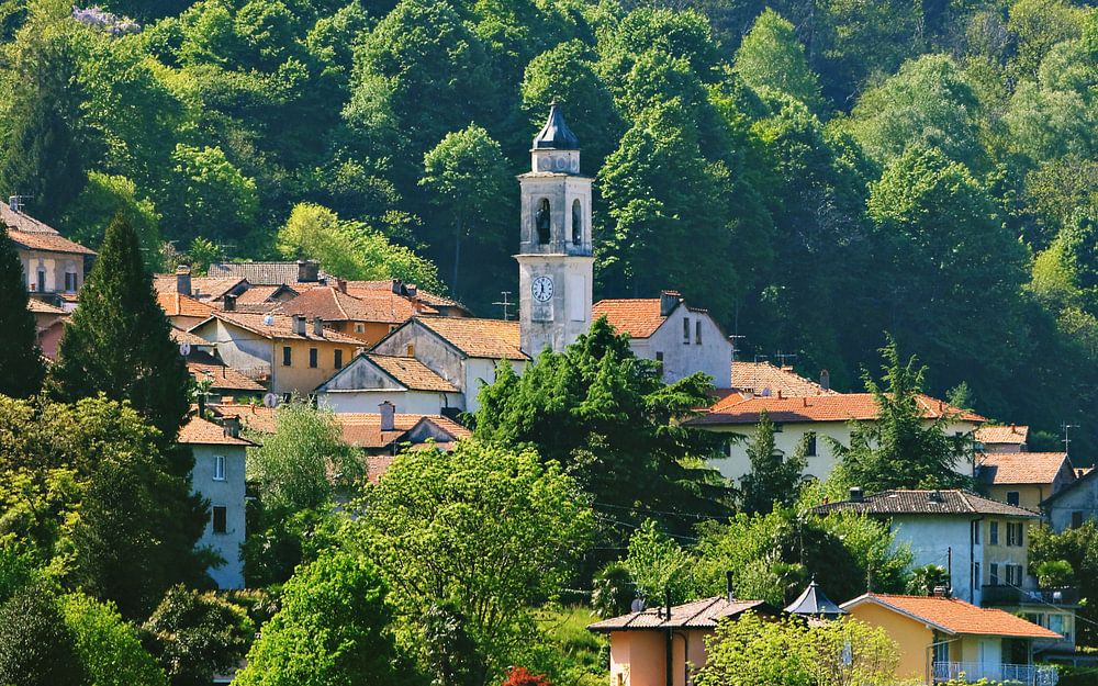 Das malerische Dorf Tronzano liegt am Ostufer des Lago Maggiore. Italien, Lombardei, Varese. Frühling 2017.
