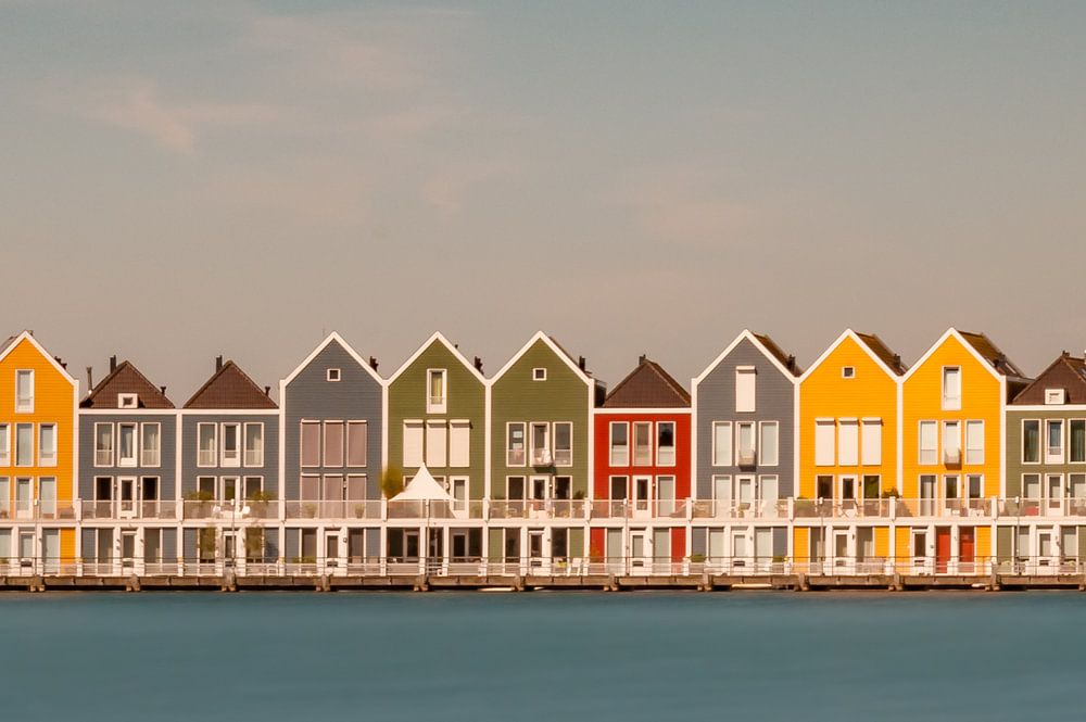 De tropisch gekleurde huizen in Houten zijn een veel gefotografeerd onderwerp vanwege de on-nederlandse setting.