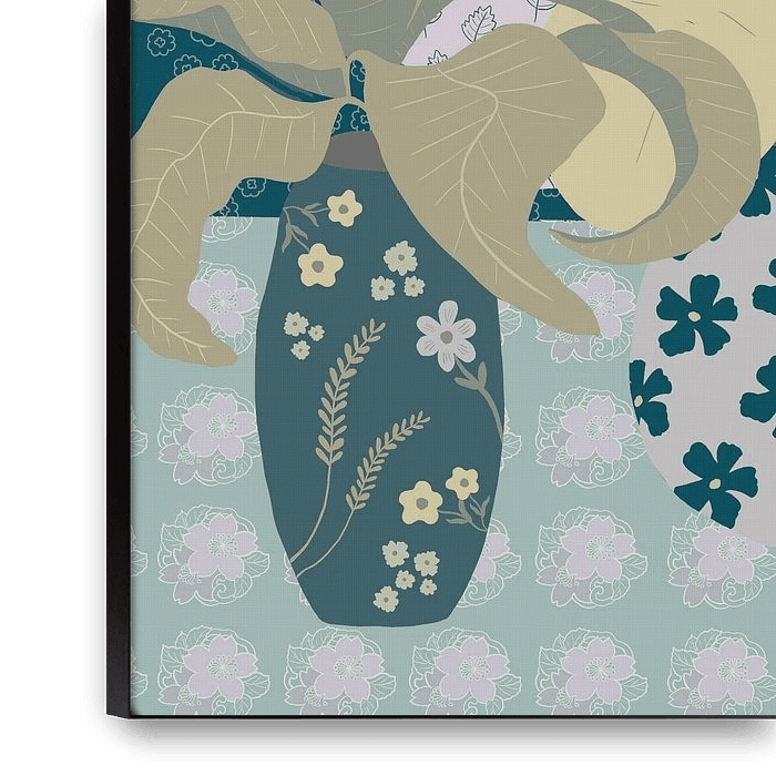Ihre gewählte Kunst auf Leinwand, gespannt in einem Aluminiumrahmen. Schnell und einfach austauschbar für eine frische Ausstrahlung und ganz nach Ihren Wünschen.