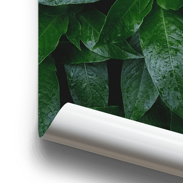 Dieses Bild zeigt eine dichte Ansammlung dunkelgrüner Blätter, die durch ihre glänzende Oberfläche lebendig wirken. Feine Regentropfen verstärken den natürlichen Glanz und verleihen dem Motiv eine erfrischende Leichtigkeit. Die verschiedenen Formen und Größen der Blätter schaffen eine natürliche Struktur, die Tiefe und Dynamik ins Bild bringt.