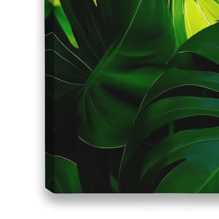 Ein zauberhaftes Labyrinth aus leuchtend grünen Blättern entfaltet sich, wobei die imposanten Monstera-Blätter mit ihren markanten Schlitzungen im Mittelpunkt stehen. Das weich gefilterte Licht erzeugt eine mystische Atmosphäre, die den Betrachter in ein tropisches Paradies entführt, wo die Natur in voller Pracht erblüht und das Auge…