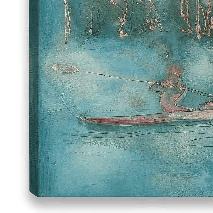 Bestelle dieses abstrakte Wandbild Türkisfarbenes impressionistisches Gemälde eines Ruderboots von Joriali Abstrakte Kunst als Reproduktion auf Leinwand, Alu-Dibond, als Poster, Fototapete oder Acrylglasbild.