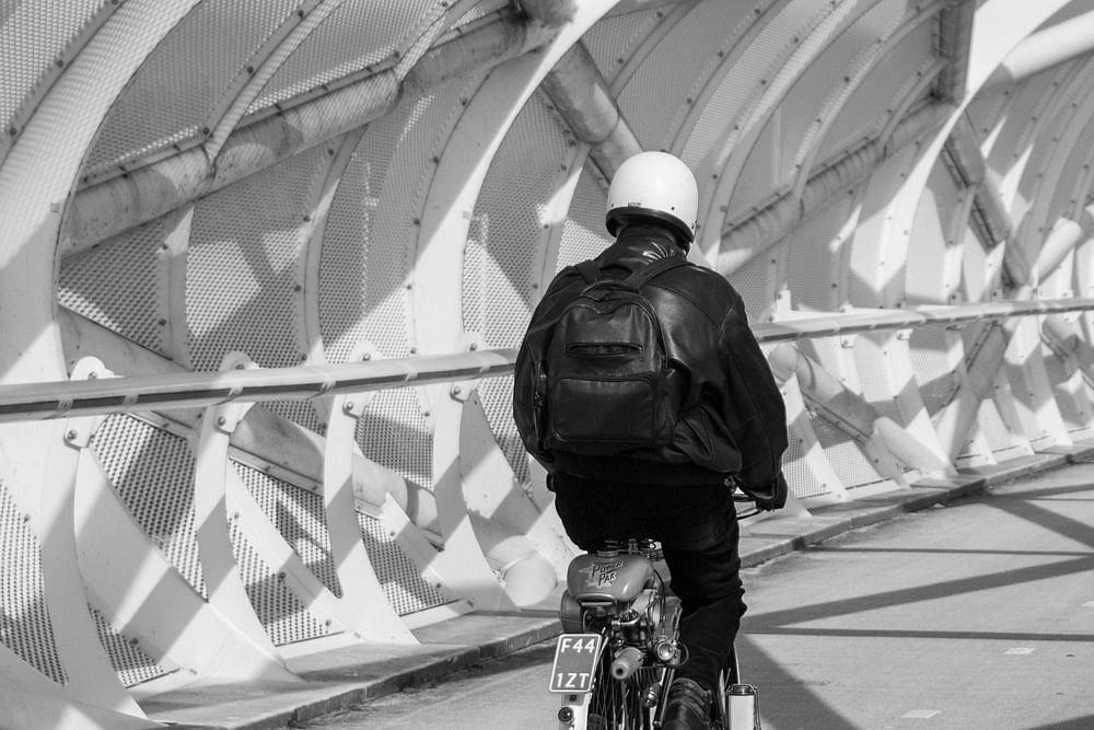 Uitgedoste Solex-rijders tuffend over de Netkous in Rotterdam.