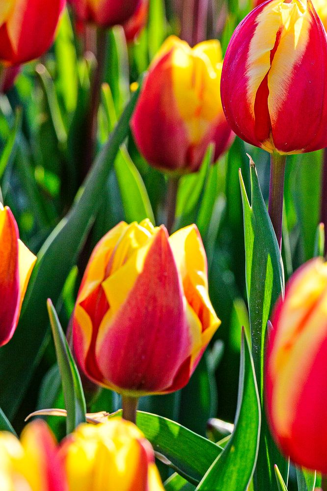 Füllendes Bild von rot/gelben Tulpen