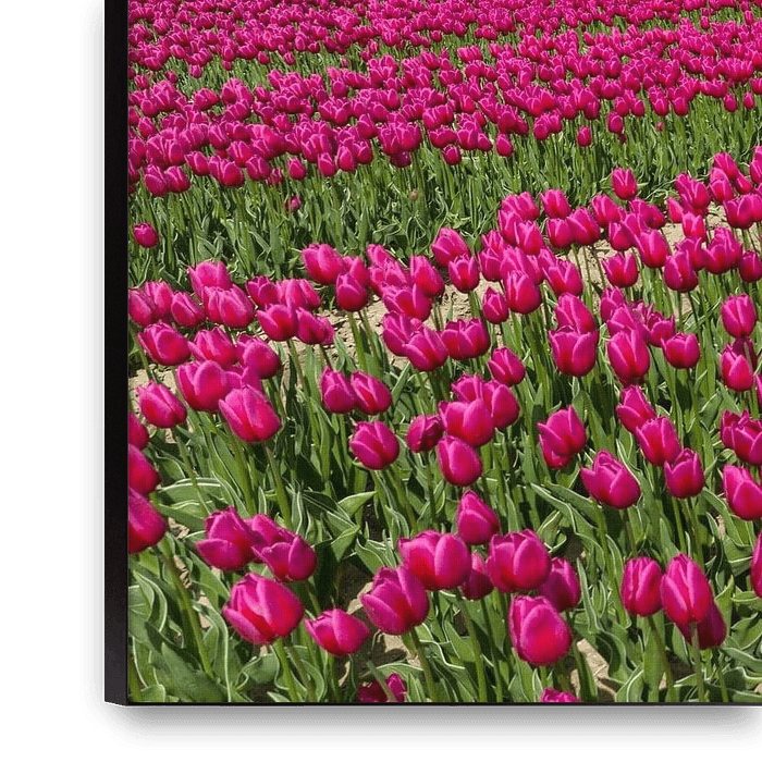 Bestelle dieses Blumen-Wandbild Tulpen in landwirtschaftlichen Feldern im Frühling von Sjoerd van der Wal Fotografie als Reproduktion auf Leinwand, Alu-Dibond, als Poster, Fototapete oder Acrylglasbild.