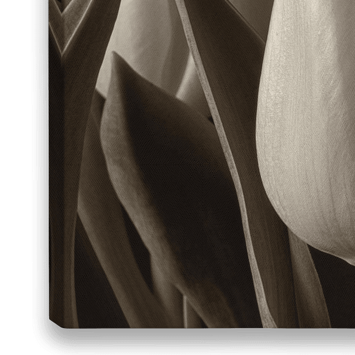 Die Nahaufnahme eines Tulpenstraußes. Natürlich schlicht, einfach und doch elegant, graziös und schön, sie ist einzigartig, wie alles in der Natur. Schwarzweiß Fotografie in warmer sepia Tönung.