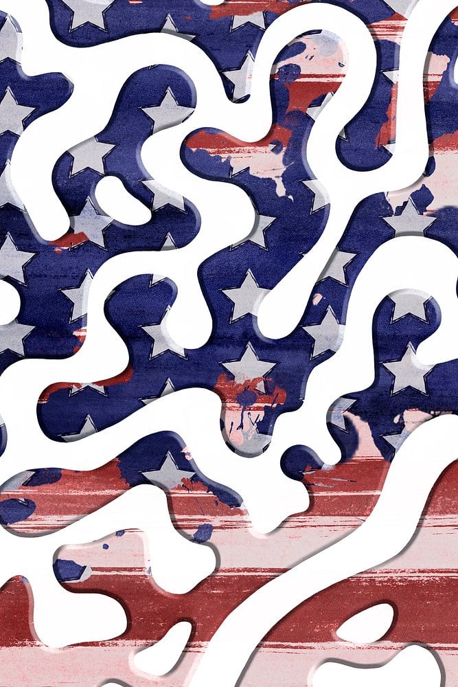 Modernes abstraktes Design mit fließenden, dynamischen Formen. Ein Mix aus Rhytmus, schwebenden Figuren und surrealen Bewegungen können in den Werken der lebendigen “Twisted Beats”-Serie entdeckt werden. Die kontrastreiche Malerei schafft eine reizvolle Spannung. Experimentelle dekorative Kunst mit Pop-Art Charakter. Erhältlich in verschieden Farbkompositionen. Hier sind die “Twisted Beats” in einer abstrakten Umsetzung mit der amerikanischen Nationalflagge zu sehen.