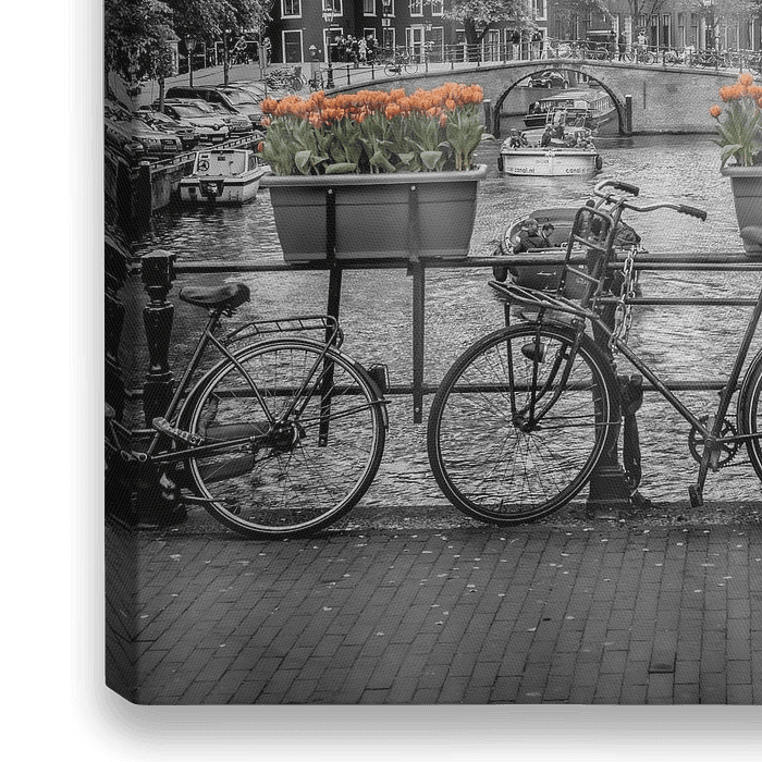 Bestelle dieses Blumen-Wandbild Typisch Amsterdam von Melanie Viola als Reproduktion auf Leinwand, Alu-Dibond, als Poster, Fototapete oder Acrylglasbild.