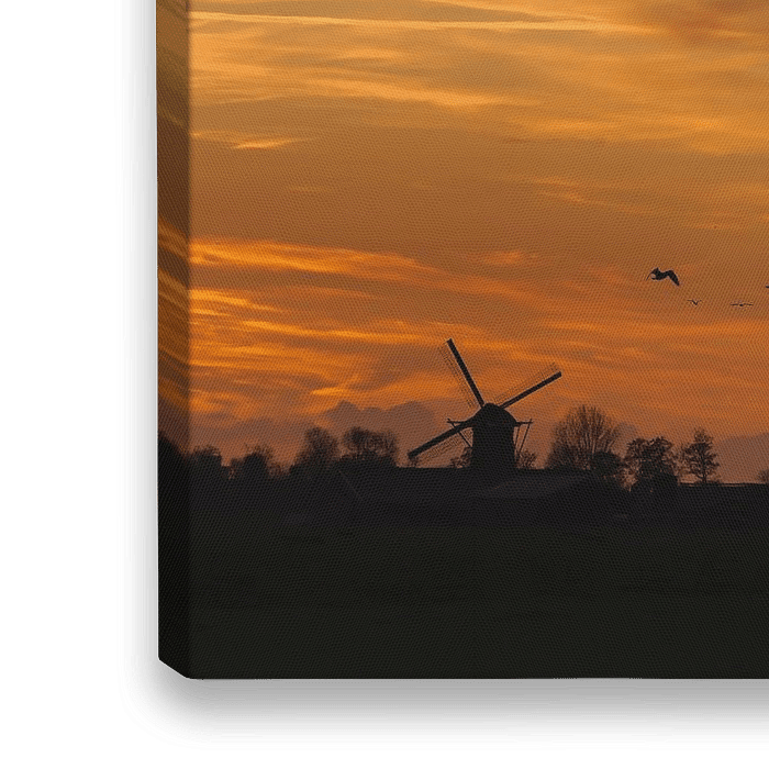 Bestelle dieses Landschafts-Wandbild Typisch Nederlandse Zonsondergang von M DH als Reproduktion auf Leinwand, Alu-Dibond, als Poster, Fototapete oder Acrylglasbild.