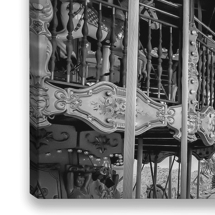 Der Eiffelturm in Paris prägt mit 324 Metern das Stadtbild. Er gehört zu den meistbesuchten Wahrzeichen der Welt. Hier eine typische Straßenszene mit einem Karussell. Klassische monochrome Impression aus Paris.